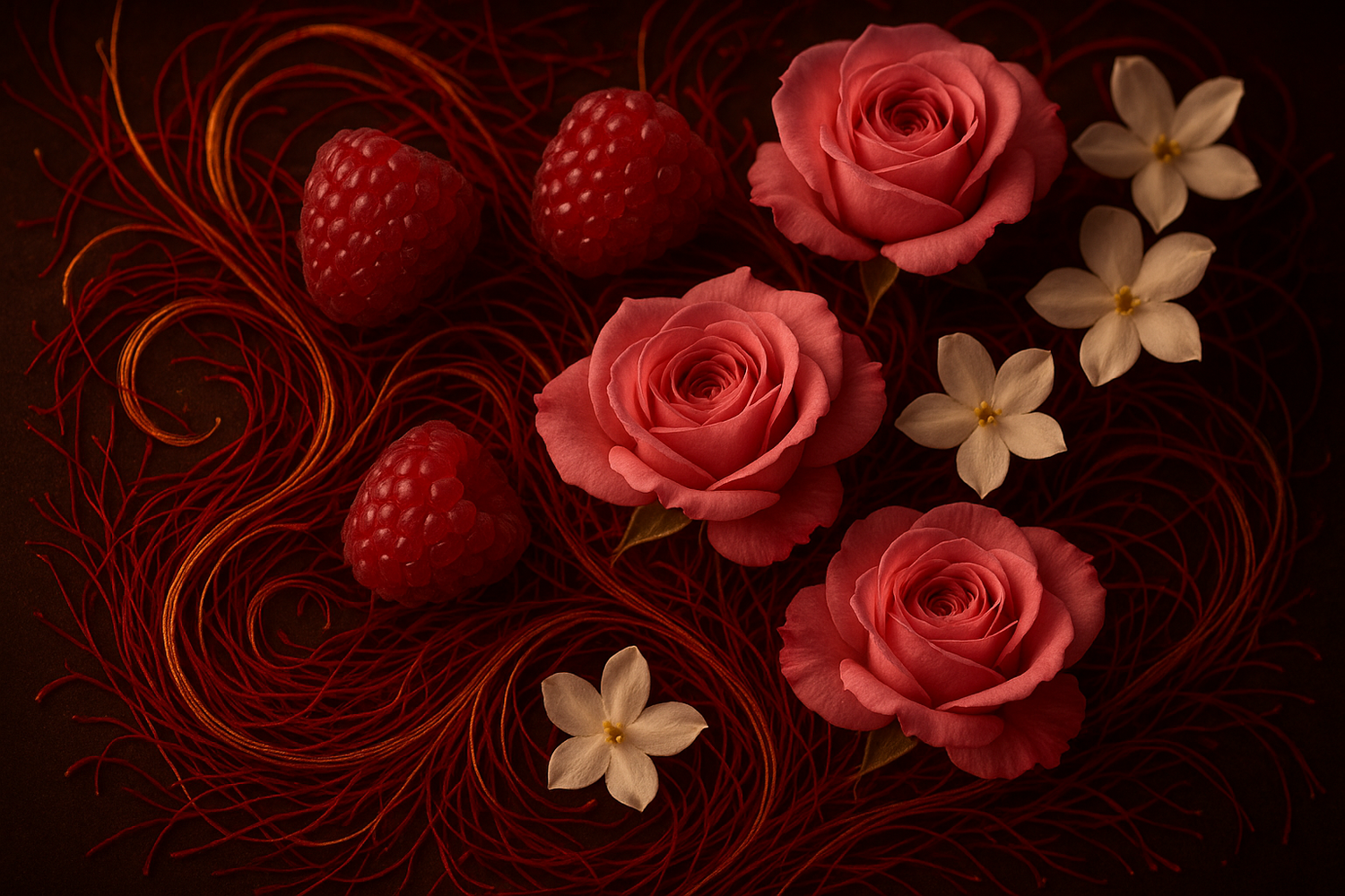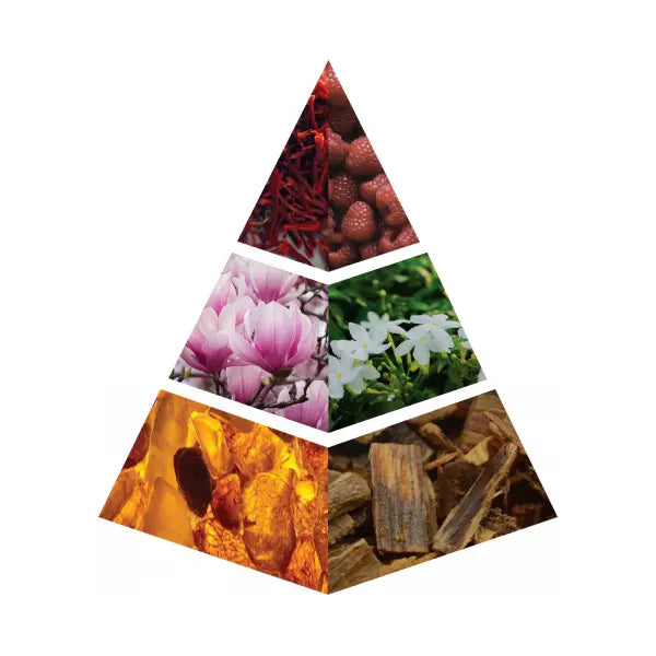 Scarlet notes of saffron and ruby raspberry fuse unconditionally with the romantic rose and the dreamy jasmine.
