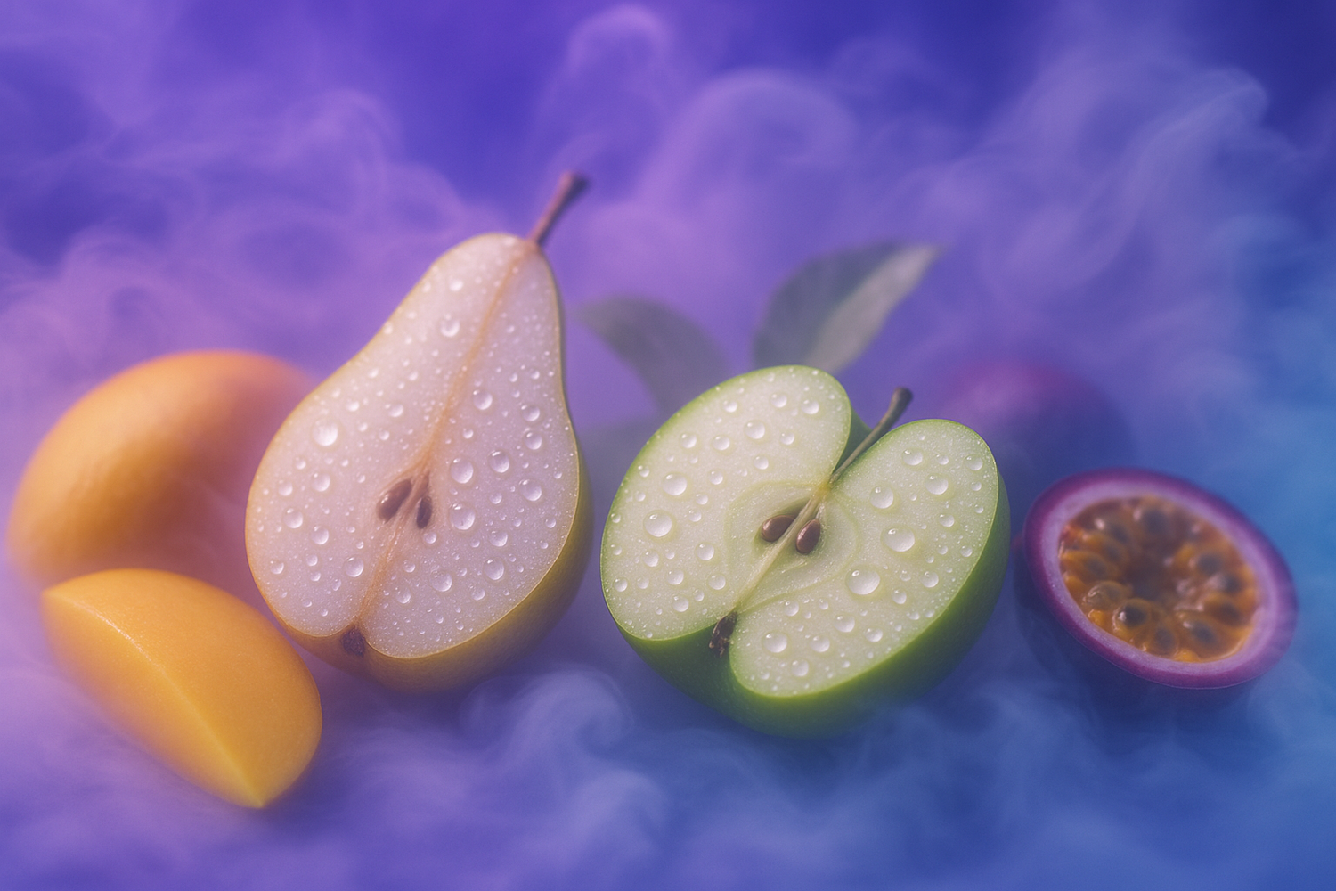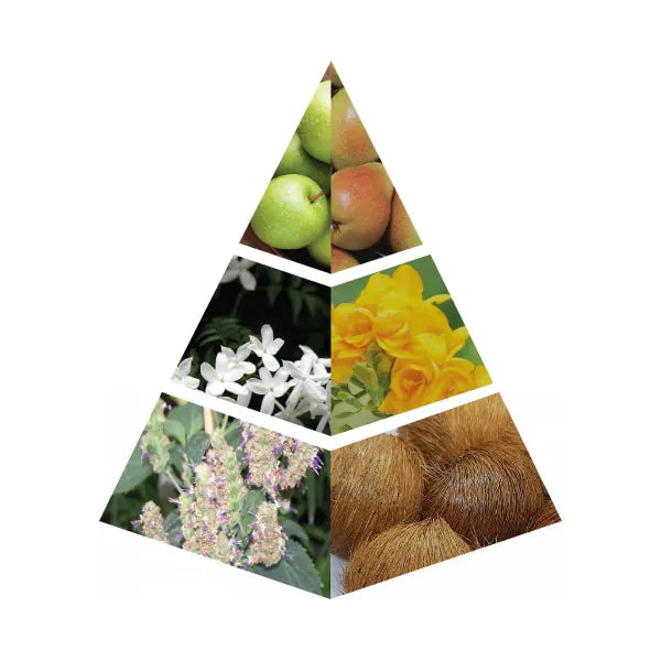 The soft scent of “Purple-blue” aims to do just that. It opens with dreamy and enveloping notes of watery pear and green apple that joyously play with the sweetness of other tropical fruits, bringing bliss to every nose that smells it.