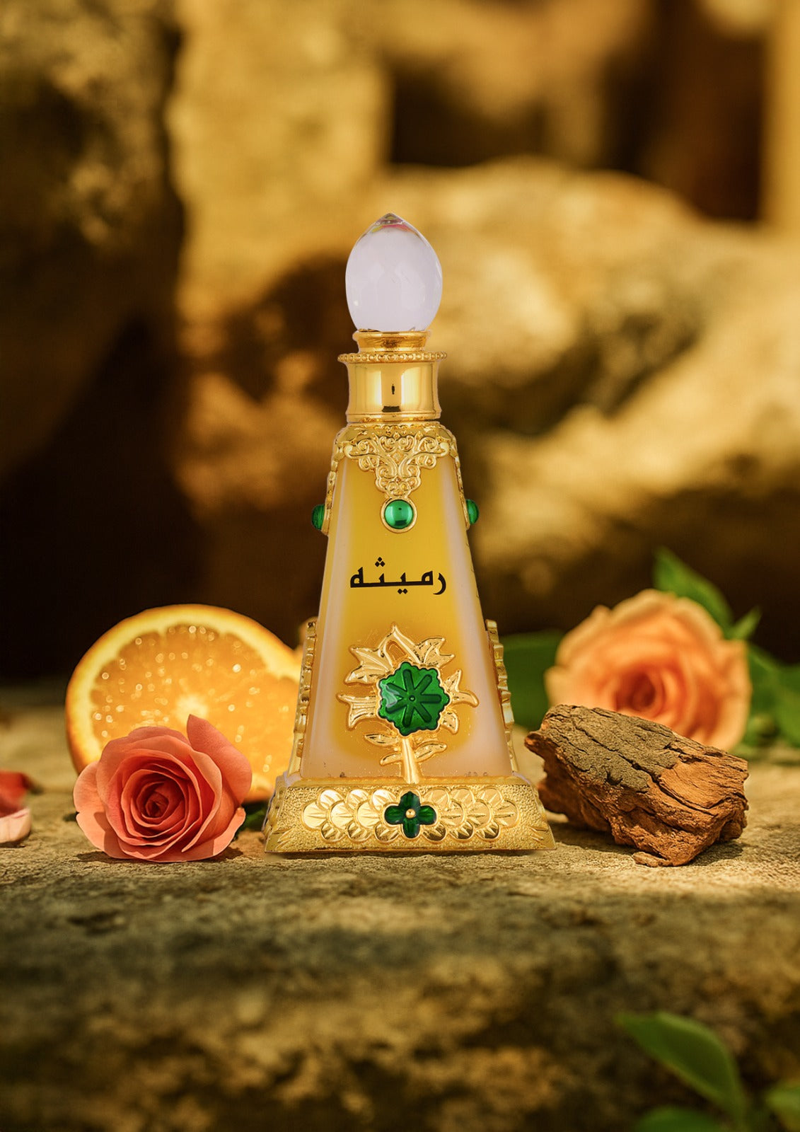 A warm and sophisticated fragrance that opens with the exotic spice of saffron and clove, brightened by bergamot and orange